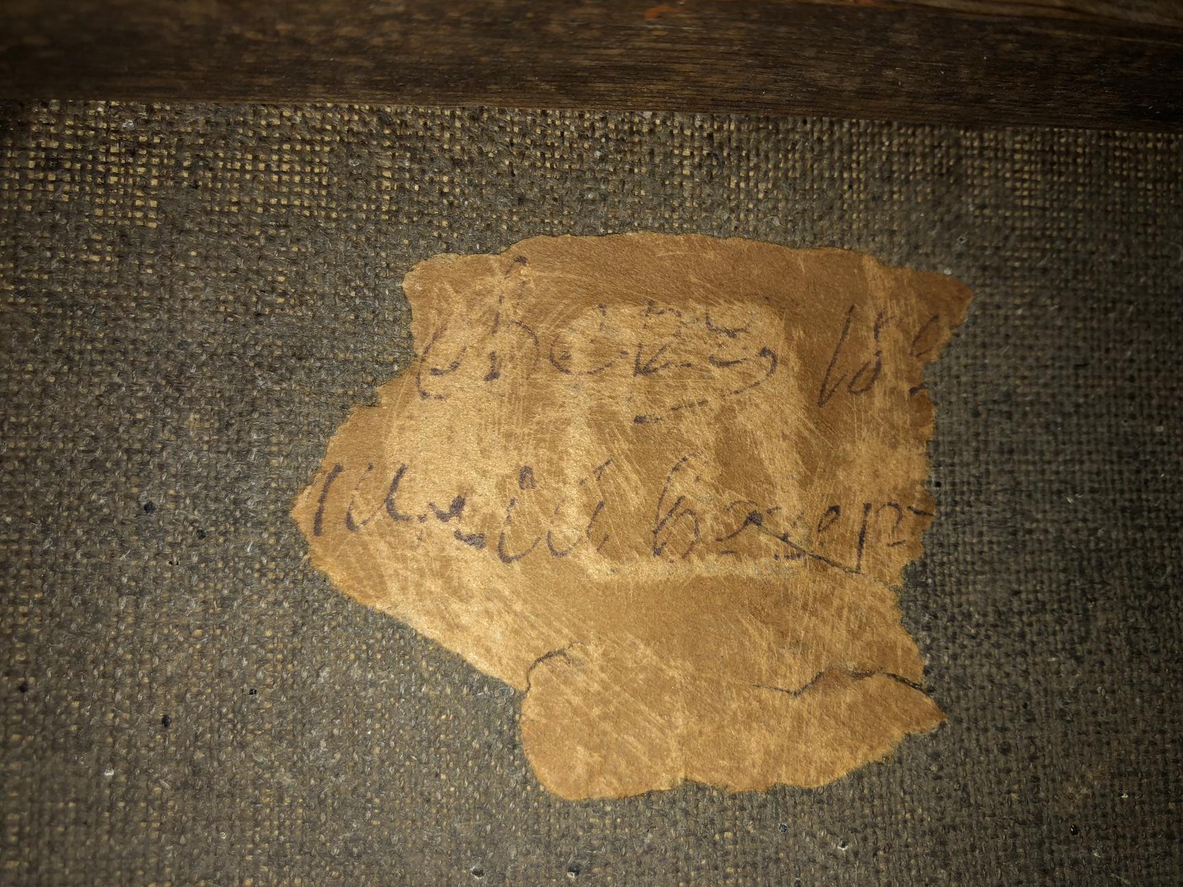 Привет да фамилия не известная а вот там наклейка странная сзади по идее там перед годом должна быть фамилия я так предполагаю а снизу название картины и конец фамилии очень напоминает одного известного художника точно не помню но на К. по моему