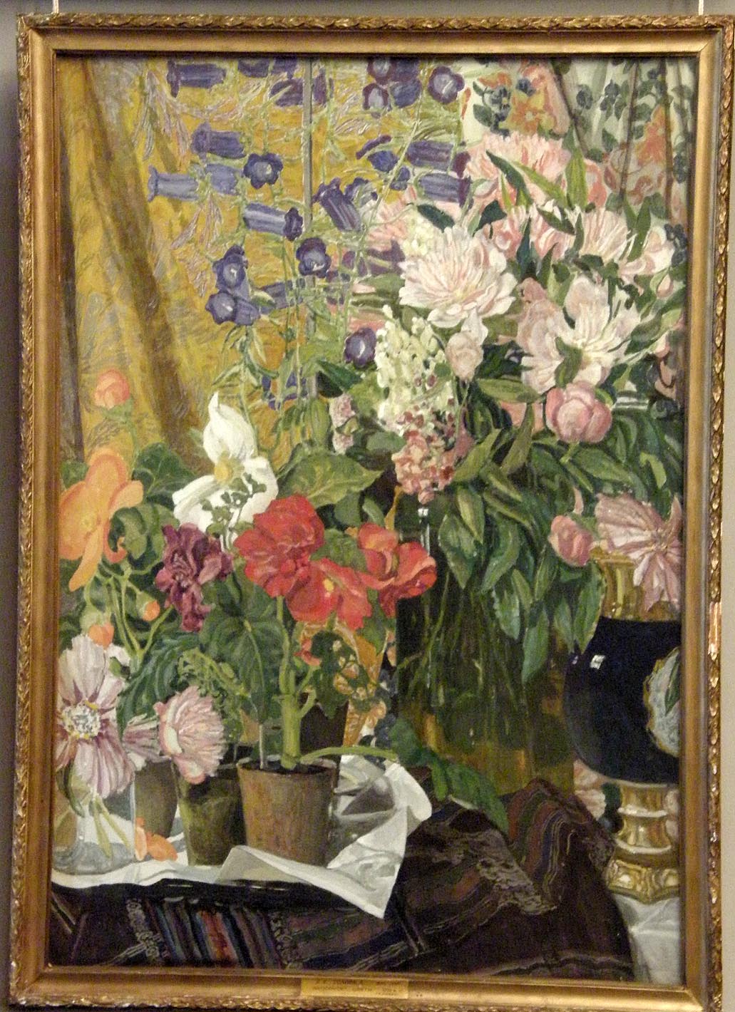 выложил лишь наиболее удачные фото-Фешина,Пастернака,Судейкина,Сапунова,да и графики в экспозиции сейчас не так много,она сосредоточена в одной маленькой комнатке на 1-м этаже.В большой гостиной исключительно живопись,а еще одна комната на 1-м этаже отдана под временные выставки,музею нужно выживать.А вообще в экспозиции находится дай бог 1/5-1/7 всей коллекции. чей кавалерист к стыду своему не помню,портрет- Бродского,а мальчик в саду -Савинова.Второй этаж- мастерская Бродского