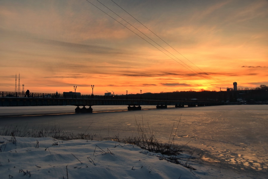 Центральный парк культуры и отдыха имени Щербакова. Мост. Закат...