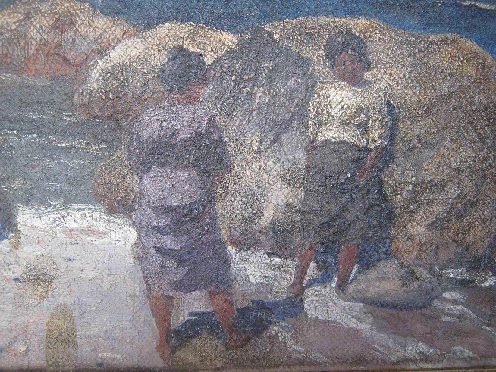 Это старая, плохо сохранившаяся, не очень удачная, если можно видеть по фото, копия "На берегу моря" А. Рылов