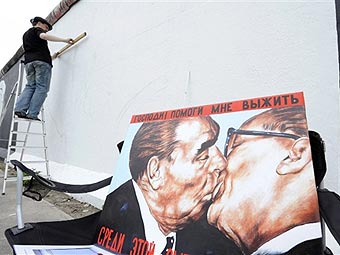 Two famous paintings, painted on the Berlin Wall in 1989 - "Brother's Kiss" and "Thank you, Andrei Sakharov, will be restored by their author, artist Dmitry Vrubel per month. In an interview with RIA Novosti correspondent, he recalled that twenty years ago, then to write "Brotherly Kiss", he needed a week. Vrubel began work on June 16.