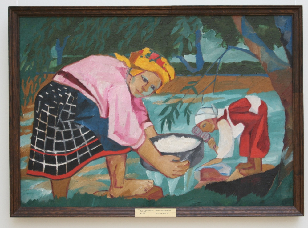 Да, он писал на обратной стороне клеёнки, она у них в Тифлисе на обороте была черная, ему было удобно так. Он же вывески для духанов рисовал и в интерьер этих духанов картинки по заказу хозяина-духанщика делал. За еду и вино.