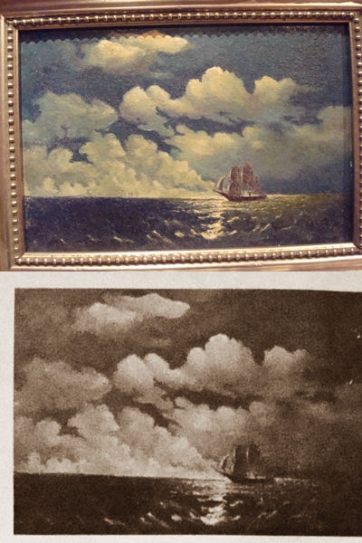 I made a comparative picture of your work and work with expertise. Of course, the quality of the scanned sheet is much worse than the photo of your paintings - of course distortion possible. Nothing to say I do not want. Just for comparison. Photos deliberately made in this color - so better and more obvious comparisons. After all, they originally in color and quality are different, these differences hinder comparison.