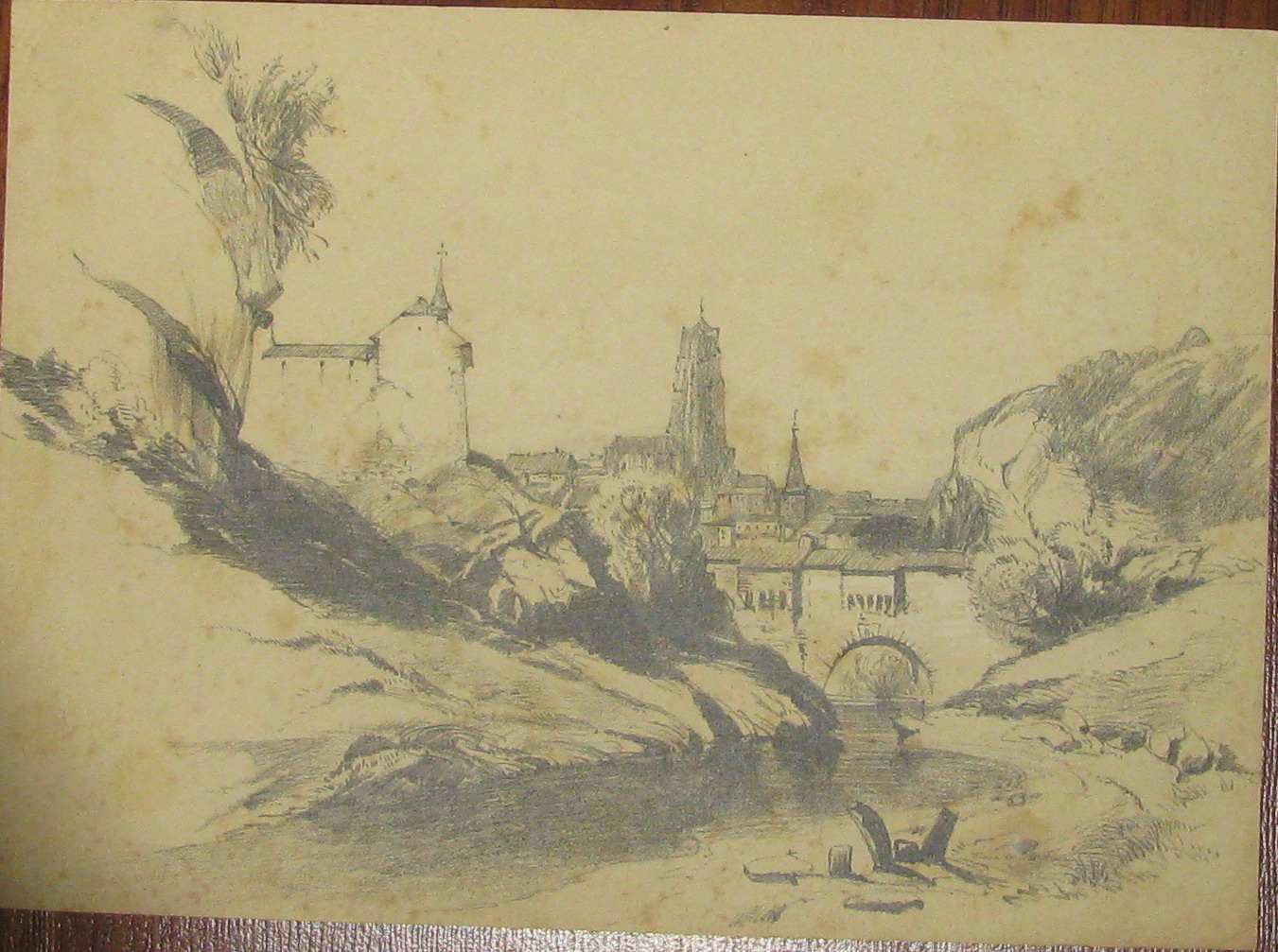 Проверьте.Стабровский Казимир Антонович(1869 - 1929)После окончания Академии Художеств в 1894 году жил и работал в старинном г. Гродно , расположенном на берегах реки Неман, на границе с Польшей и Литвой . Писал пейзажи -город,живописные окрестности.Изображенные на эскизах строения характерны для тех мест,а изображения мельниц узнаваемы.Поищите,сопоставьте -возможно подтвердится сходство изображённых мест ,а значит и возможное авторство.