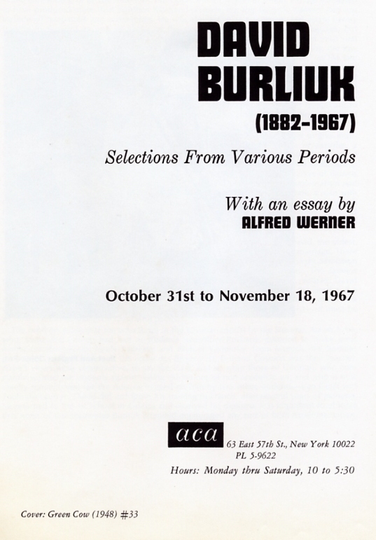 Выставляю несколько страниц. Особенно, обратите внимание на последнюю, где в биографических сведениях АСА галлерея перечисляет все события, связанные с творчеством Бурлюка. Те, которые проходили в АСА с 1941 по 1961 АСА даже не называет выставками - это были шоу. Да, персональные и групповые шоу. АСА имело эксклюзив, поэтому должны были продавать его работы. И там же увидете список институций где проходили выставки с периода 1923 по 1962 гг. Цитата: