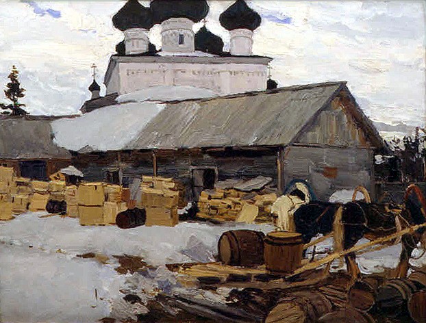 Эта картина родилась после творческой поездки в Архангельскую область с художниками Е.И. Зверьковым и И.А. Поповым в 1963 году.