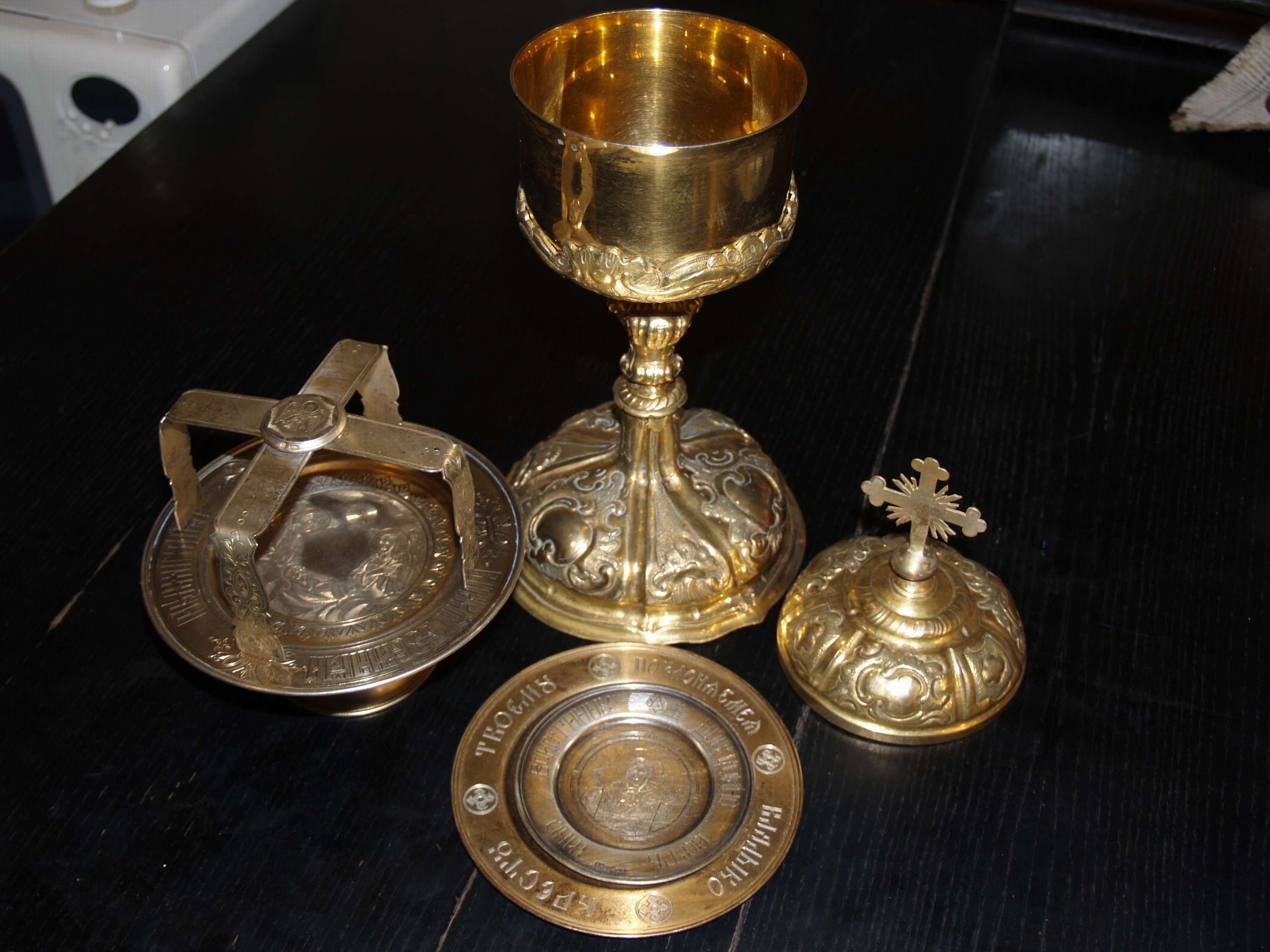 Набор евхаристический из серебра: Потир, Дискос, Звездица, две Тарели (большая и малая):