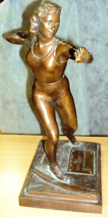 Дискоболка. Скульптор Е.Янсон-Манизер. Статуэтка из Бронзы. Высота 41 см. Отлита на "Монументскульптуре" в конце 1940-х гг в Ленинграде. Есть поздравительная надпись на основании.