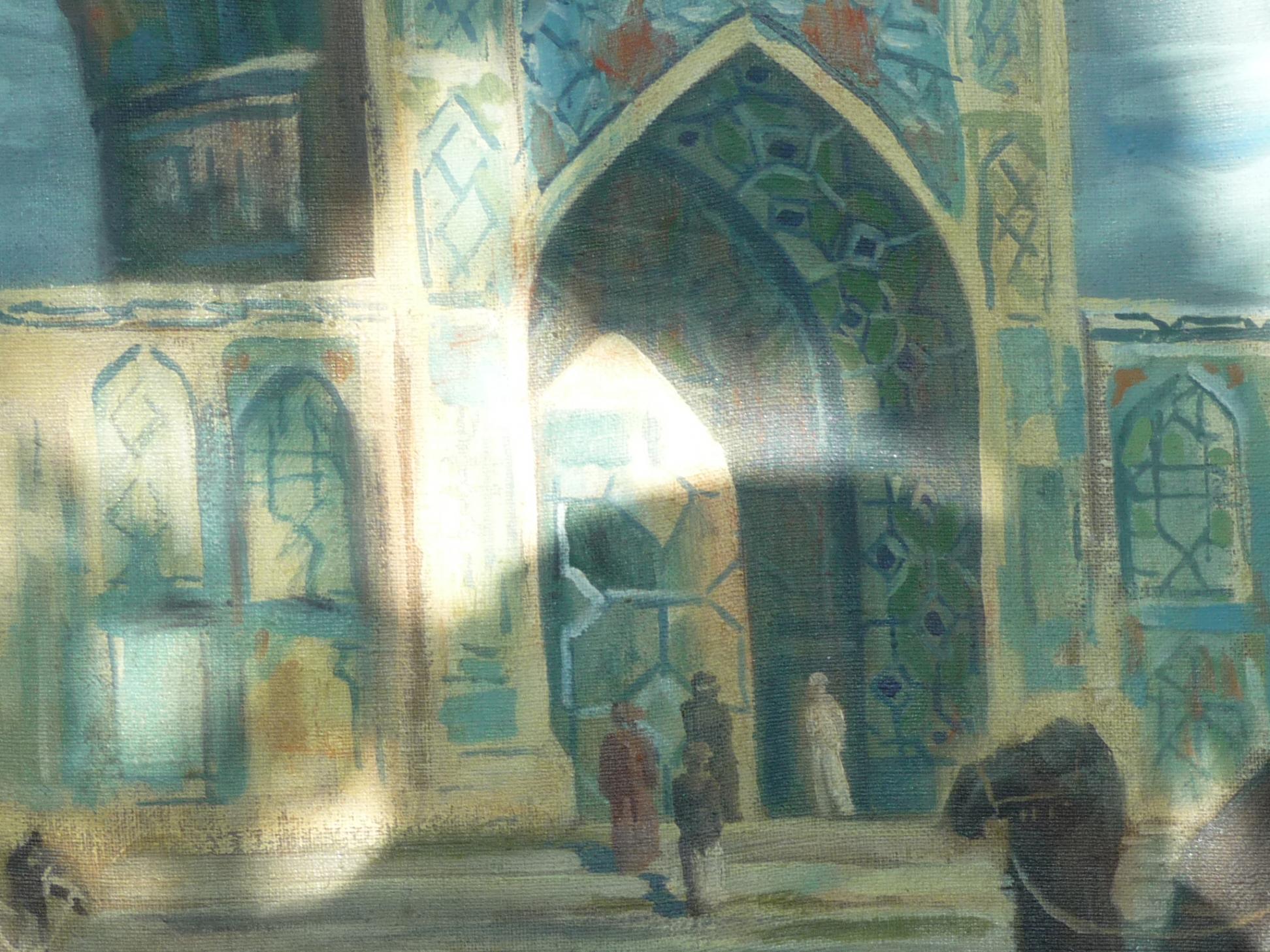 Hello. Help please identify the artist and the approximate cost of the painting. Painting "Pilgrims" oil on canvas. Written by Uzbek artists in 1993