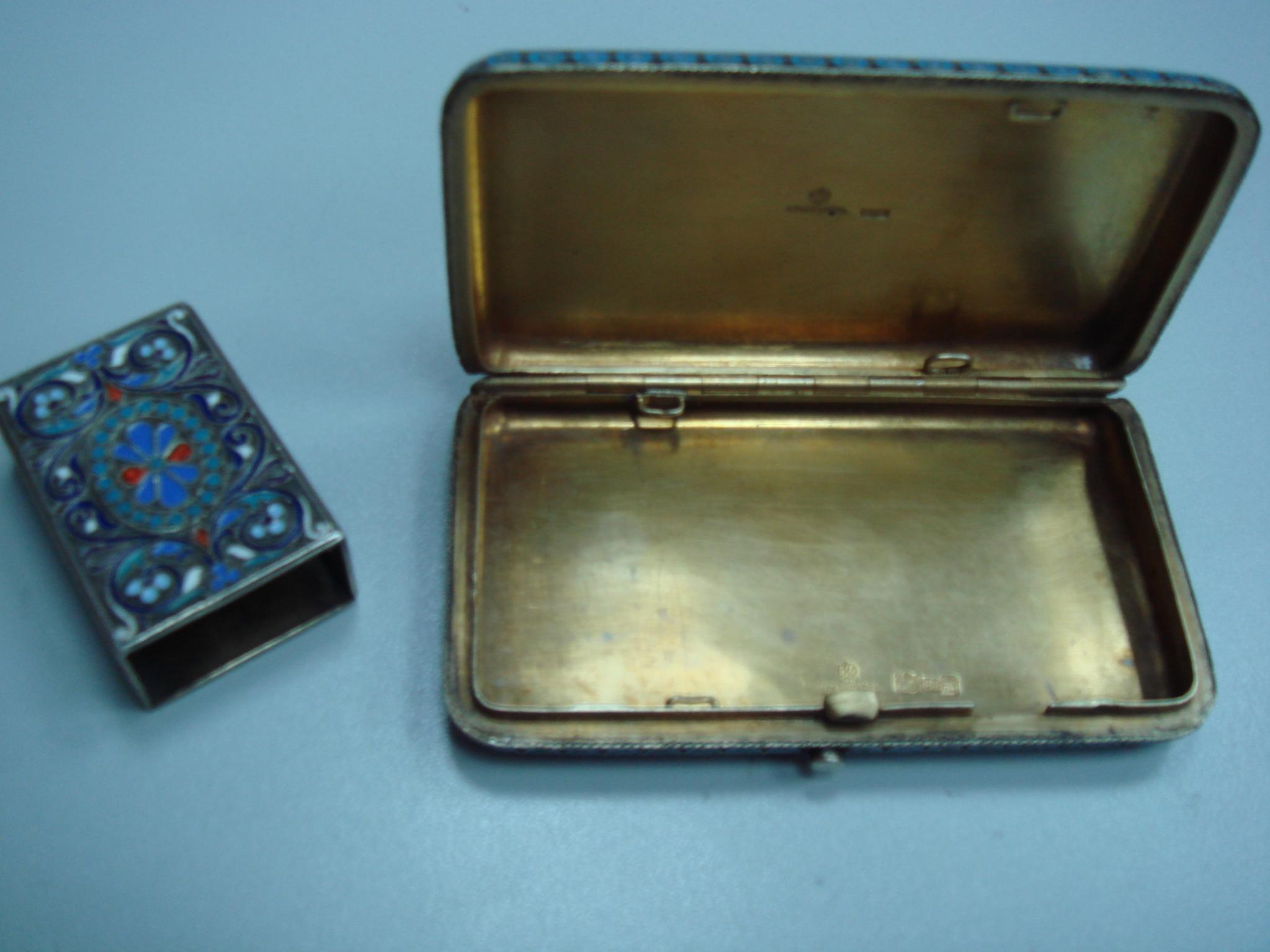 Футляр для спичечной коробки 4,5-3-1,5(см) Хлебников,серебро 84 проба,эмаль,золочение,180 гр. Отличная сохранность. |