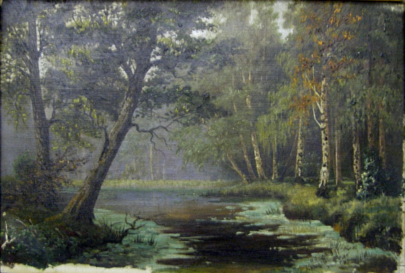 Пейзаж с лесной речкой. Холст, масло. 23 х 32.