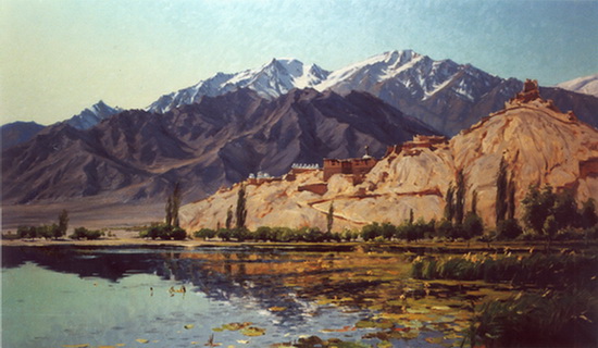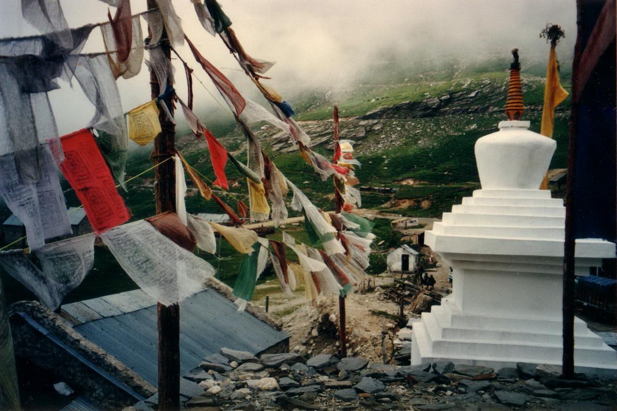 Познакомились с одним молодым человеком, он шел в Дели учиться, как наш М.В.Ломоносов. Не хотел этот человек одевать на себя одежду монаха, говорил, что это уже архаизмы. Он и стал нашим проводником в дальнейшем. Как-то в пути он нас остановил и попросил чего-то обождать. "Отдохните ребята" - сказал он. Через минуту в 100 метрах от нас произошел колоссальный обвал скалы, летели камни величиной с дом, пути уже не было и нам пришлось обходить это место в течении нескольких часов. Но самое неприятное встретить на своём пути селевые потоки и топи. Приходилось раздеваться до гола и перебираться по пояс ,в серой грязи, эти места. Как-то пришлось заночевать перед селевым полем, надо было чтоб хоть немного все сошло. Мы нашли старый заброшенный дом, крыши не было, но были столы. Соорудили ложе, обложились рюкзаками и одели все, что было теплое. На утро проснулись под слоем снега. Но так устали, что не почувствовали, как пошел снег. Маршрут пролегал от местечка к местечку. Там мы могли что-то поесть и отдохнуть. Есть можно только молочные продукты и рис. Я ещё заказывал томатный суп, хотелось горячего и жидкого. Все очень острое, есть невозможно, но потихоньку привыкли. "Чили-масала" во всей еде, все горит внутри. Но в пути всякая еда хороша. Был смешной случай. Как-то в одной деревушке мы увидели большой деревянный сруб и спросили - Что это? Нам ответили ,что это местный бар. "Наконец!" - сказал я. И вечером мы туда зашли. Внутри стояли деревянные столы на которых стояли графинчики с водкой 30', для моряка - это пыль! Мы присели. Напротив сидели тибетцы и что-то бурно обсуждали. Потом повернулись к нам и сказали, что русские крепко умеют пить. Спросили будем ли мы пить - кто кого? Я так понял, что напротив меня посадили алкокрепыша. После нескольких рюмок, парня унесли за руки, за ноги. Потом посадили другого, и с этим произошло тоже самое. Из бара мы уходили под гул аплодисментов. Удивительно, но они не могут пить, их просто убивает.Шли через перевалы попадая в удивительные места. Наш проводник рассказал нам, что скоро мы увидим чудо - облако между горами, которое никуда не пропадает, т.е. всегда висит над долиной и смотреть на это с высоты получаешь истинное наслаждение, проникаешься понятием созерцания. Через пару часов мы это увидели - это было чудо! |