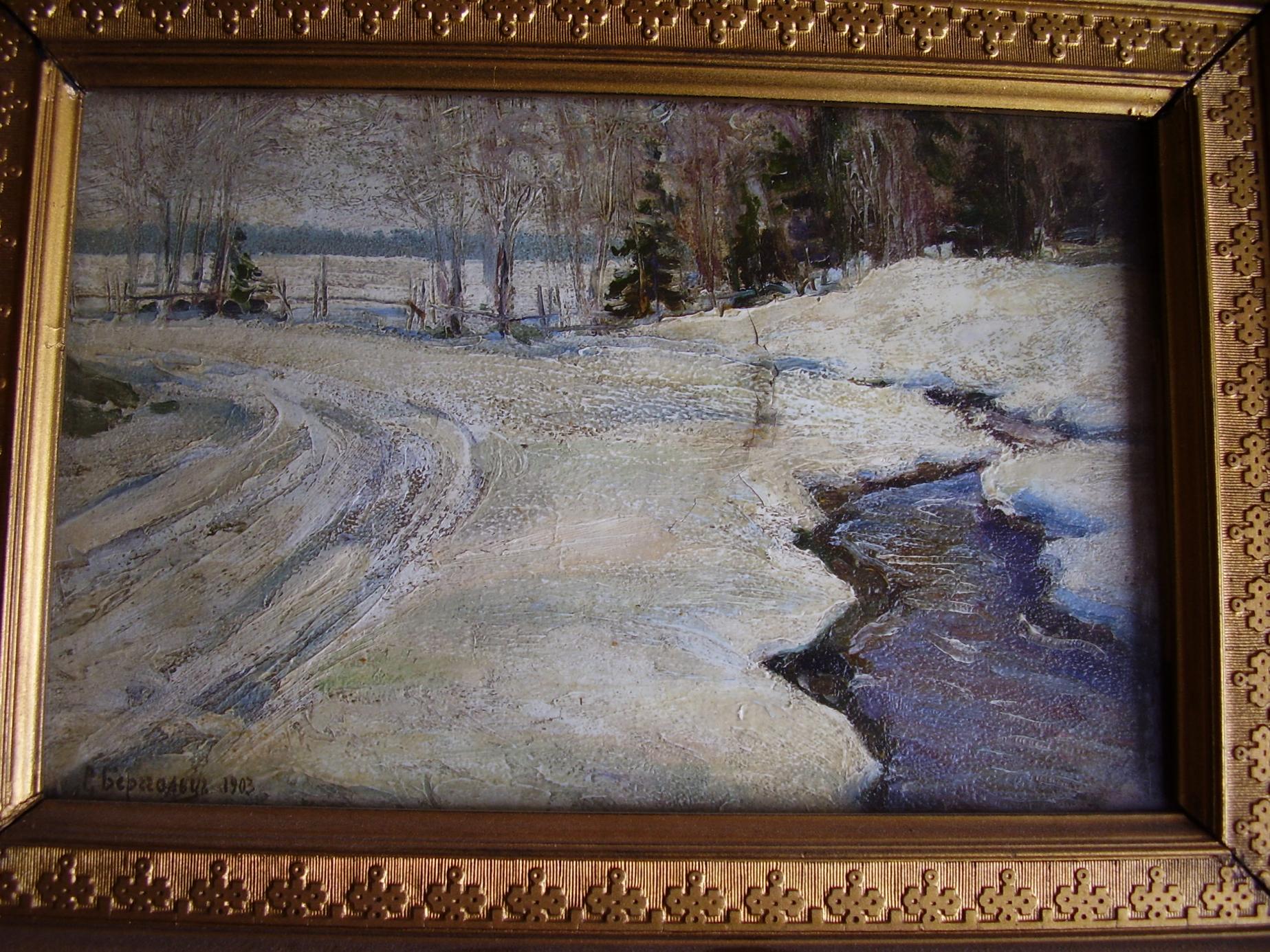 "Winter Landscape". He 1900s. Oil on canvas. 69,5 h97. Signed lower right. In the frame. Craquelure. Spot restoration. Expert advice-TG (Expert Churakov). Home 380 000 rub.  |