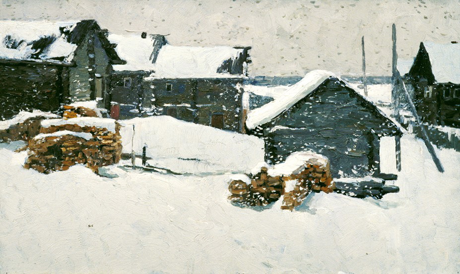 Картины, которые трогают, - это не обязательно самые лучшие с точки техники и всего такого картины. Взять хоть того же Саврасова - тоже ведь не Клод Моне с точки вклада в мировую живопись. С другой стороны, и у Клода Моне 70 процентов картин - добротны, но не более того, а иногда просто скучны. У меня есть еще одна любимая картина, которая для меня больше, чем просто картина. В. Стожаров. Каргополь. Склады. 1964.  Трудно объяснить тем, кто не видел в те же годы таких же мужиков, с такими же подводами, на таком же солнышке. Эх... |