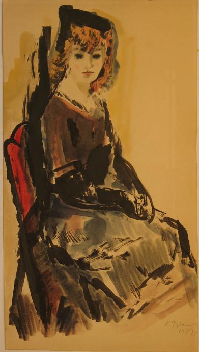 10) К. Сомов. Картон. Акварель, тушь, перо, белила. Размер: 19х17. 1900-е годы. Подпись внизу и сзади. Частная коллекция. 11) Н. Гончарова. Бумага. Акварель, гуашь. Размер: 18х14. 1930-е годы. Частная коллекция. 12) К. Рудаков. Бумага. Акварель, уголь. Размер: 19,5х16,5. Подпись внизу. Частная коллекция. 13) К. Рудаков. Бумага. Акварель, цветной, гранитный карандаш. Размер: 21х14. Подпись сзади. Частная коллекция. 14) Д. Митрохин. Бумага. Акварель, тушь, перо. Размер: 21х30. 1957 год. Подпись внизу и сзади. Частная коллекция. 15) Д. Митрохин. Бумага. Акварель, тушь, перо. Размер: 20,5х29,5. 1957 год. Подпись внизу и сзади. Частная коллекция. 16) Д. Митрохин. Бумага. Акварель, графитный карандаш. Размер: 14х20. 1955 год. Подпись внизу. Частная коллекция. |
