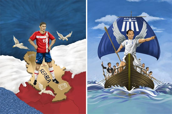 Perhaps many will watch World Cup soccer tournament in South Africa, (I will personally). That's advertising agency in New York Wieden + Kennedy has produced a poster to the Championship 1932, the number of participating countries. Each poster represents the football and the national traditions of the country.