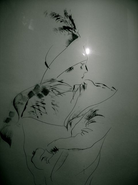 Продам большую графическую работу Рустама Хамдамова (бумага, тушь, перо), размер в раме 84х108, размер в паспарту 55х80. Москва.