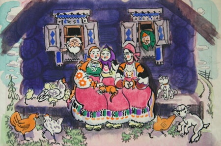 The main source of motivation over time, impressions of travel, exploring and Zagorsk (now Sergiev Posad), Uglich, Rostov, Alexandrov, Suzdal, Pereslavl-Zaleski and other homes of architectural antiques, amounting to many years of heavy machine-cycle of an old Russian cities (1942-1968) . At the same time was working on illustrating fairy tales (design of children's books of Pushkin's Tale of the Dead Princess and Seven Knights, 1949; Ruslan and Ludmila, 1960; U Lukomorya, 1961, as well as compilations - The wave of the wand, 1958; Russian Fairy Tales, 1963). In 1960 the two lines, full-scale, landscape and fabulous, merged into a common channel, creating a colorful stream of iso-folklore, absorbing, in addition to routine genre, a lot of motivation from lubok, tiles, painted spinning wheels, gingerbread planks. Picture books have become self-sufficient artistic albums, where the sparkling "modern splints" has certainly dominate the text.