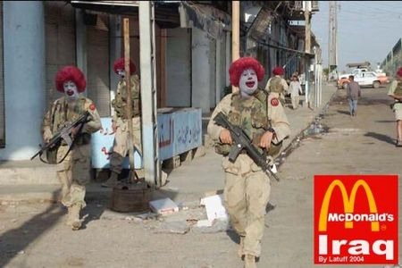 Современные британские художники Питер Кеннард и Кэт Пиктон-Филлипс (Peter Kennard & Cat Picton-Phillipps) в гробу видали власти США и Британии и поэтому в своем искусстве отчетливо выражают отношение к американским военным действиям по всему миру: «Х*й войне!»
