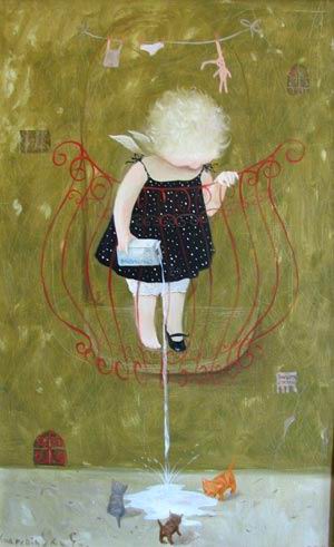 Её персонажи эволюционировали, подобно Микки Маусу,- из мыша с вытянутой физиономией, со временем, превратился в пухленького "любимца". Ниже- более-менее ранние работы. Первая 200х80 в начале 2005г. стоила 3000 $, вторая 50х80-2000 $. Последний раз редактировалось Fed; 24.09.2010 в 17:56. |