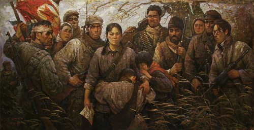 Хван Чхоль-хо. «В раздумьях...» 2007 г. Чон Мён-иль. "Пусть расцветает народное зравохранение!" 2007 г. Ким Чхоль-ён. "Кровь за кровь!" Ко Су-чжин. "Под ритм барабана" Ким Пон-чжу. Полководец послал трактора! Ким Сок-чин. На рыбной ферме Ким Ин-сон. "Экскурсия" Хан Сон-хо. Бдительно охраняем границы нашей Родины Картина "Вечерняя заря над Кансоном". Автор - Чон Ен Ман. Полотно очень известно в КНДР, являясь государственным шедевром.