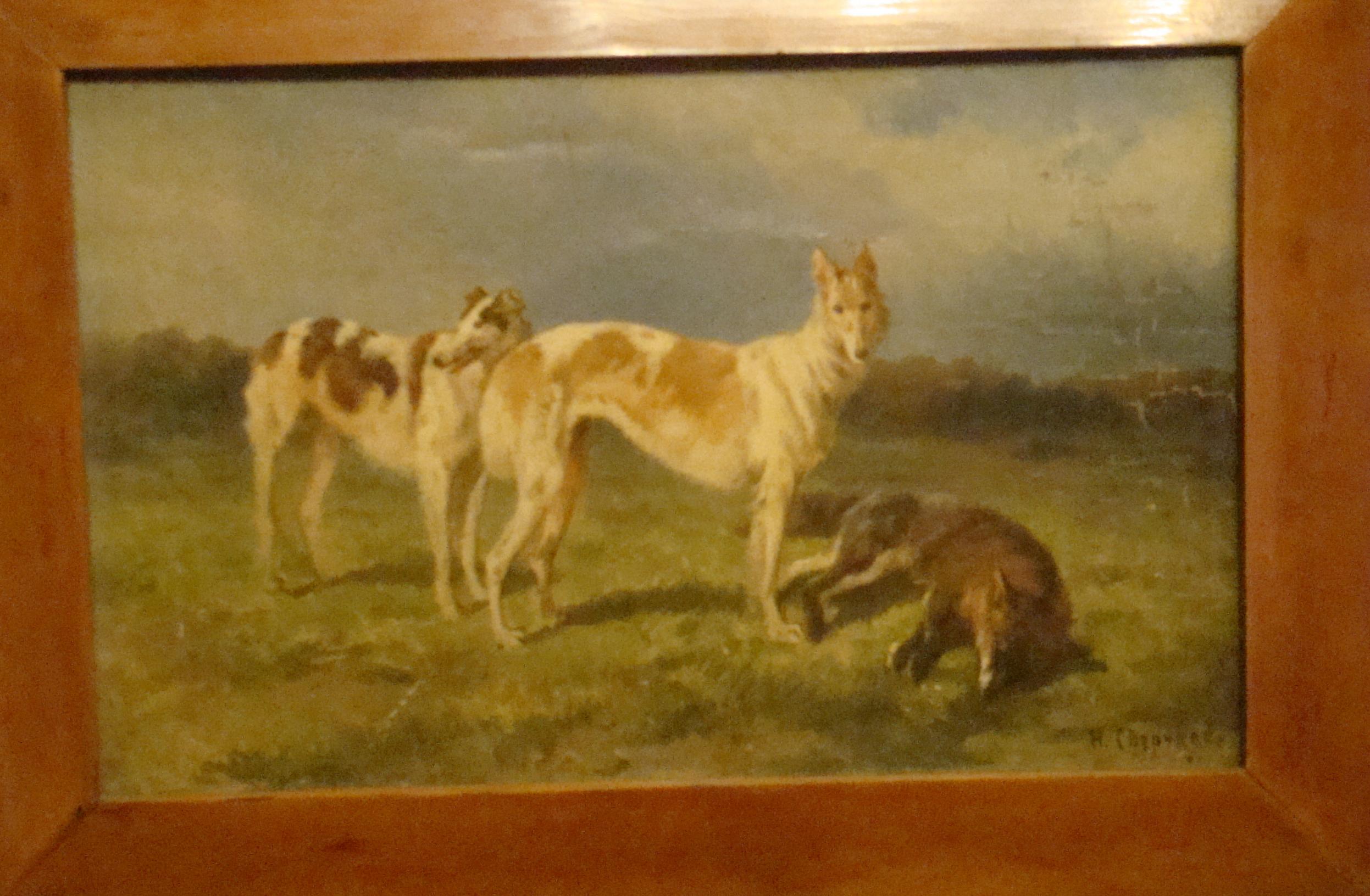 NE Sverchkov "two hounds and a fox (after hunting), oil on canvas, 30h46, 5