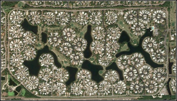 Увеличте снимки и увидите, что там домики, участки вокруг них, дороги. Это фотографии населённых пунктов во Флориде, многие у воды и очень много зелени. |