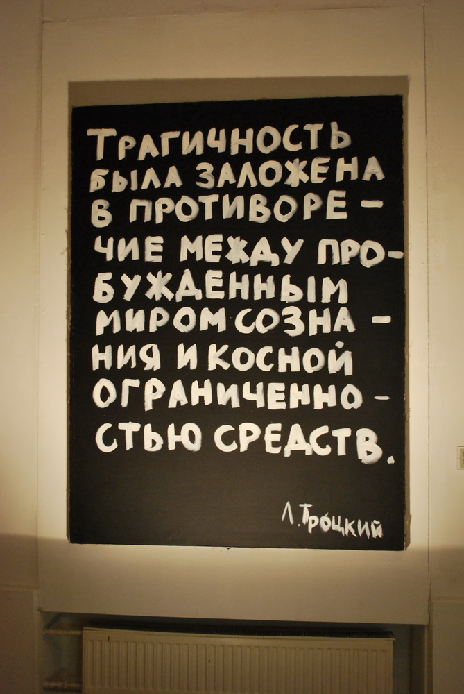 Мне кажется, что проект иделально подходит школьникам разных возрастов. Для групповых экскурсий самое то. Зал изолирован, никакого «жесткача» на глаза не попадется. Жесткач – на третьем этаже ![]() «Насмотренным» зрителям будет, может, чуть скучновато. Но останавливающие вещи будут и для них. Мне понравился Осмоловский с билетами в рай, Ленин Наталии Турновой, костюм электрического инопланетянина Андрея Бартенева, Музей меня Желудь и Родко (через Д) Анатолия Журавлева. Смотрел Владимир Богданов, AI |
