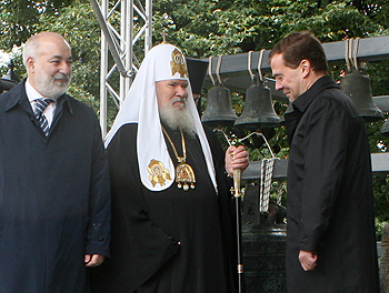 Добавлено через 7 минут Danilov Monastery 12 September (2008), the day of the finding of the relics of St. Prince Daniel of Moscow (1652), at the St. Daniel Monastery Patriarch of Moscow and All Russia Alexy II and Russian President Dmitry Medvedev has headed the church and community celebrations devoted to the act of transfer St. Daniel Monastery historical ensemble of the Danilov bells are returned to Moscow from Harvard University, USA Morning at the Trinity Cathedral of St. Daniel Monastery, the celebratory liturgy, which made Metropolitan of Kaluga and Borovsky Clement, managing director of the Moscow Patriarchate, Archbishop Arseny of Istra, Bishop Alexander of Dmitrov. During the Divine Liturgy, Metropolitan prayed Volgograd and Kamyshin Herman. After the service the procession with the relics of the honest of the Holy Prince Daniel of Moscow was held from Holy Trinity Cathedral in the Monastery Square where you installed the bells returned.
