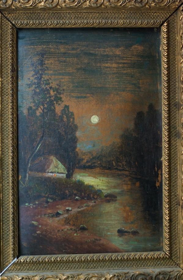 Картина в плохом состоянии. Картон выгнулся. краски поблекли. Эксперт который смотрел картину в 90х годах сказал что хоть и подлинник но из за состояния не представляет никакого интереса и ценности. Забрал Оленя Волкова, из за рамки)))