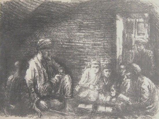 From the personal collection: 1.Na photo: "Old School" 34h44 sm.Bumaga, ink, original linocut .. 1938 1940gg. |