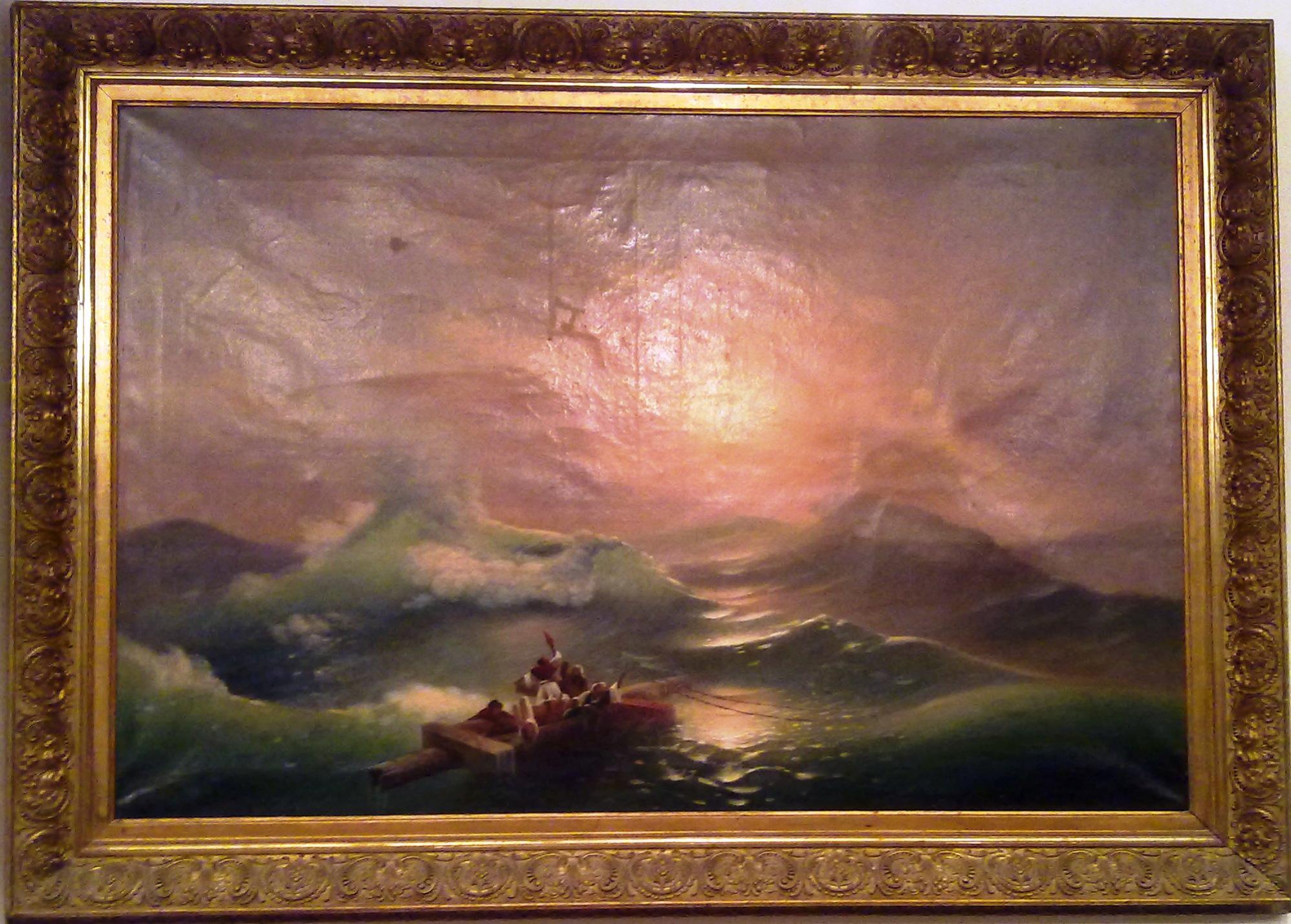 A copy of Aivazovsky's The Ninth Wave, oil on canvas, frame, frame, canvas size 130h85sm.