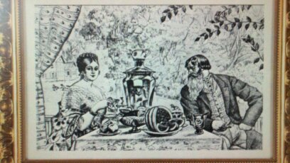Тема мужика с упертой рукой у него есть, не говоря про тетеньку с блюдцем в руке. А это не литография? |