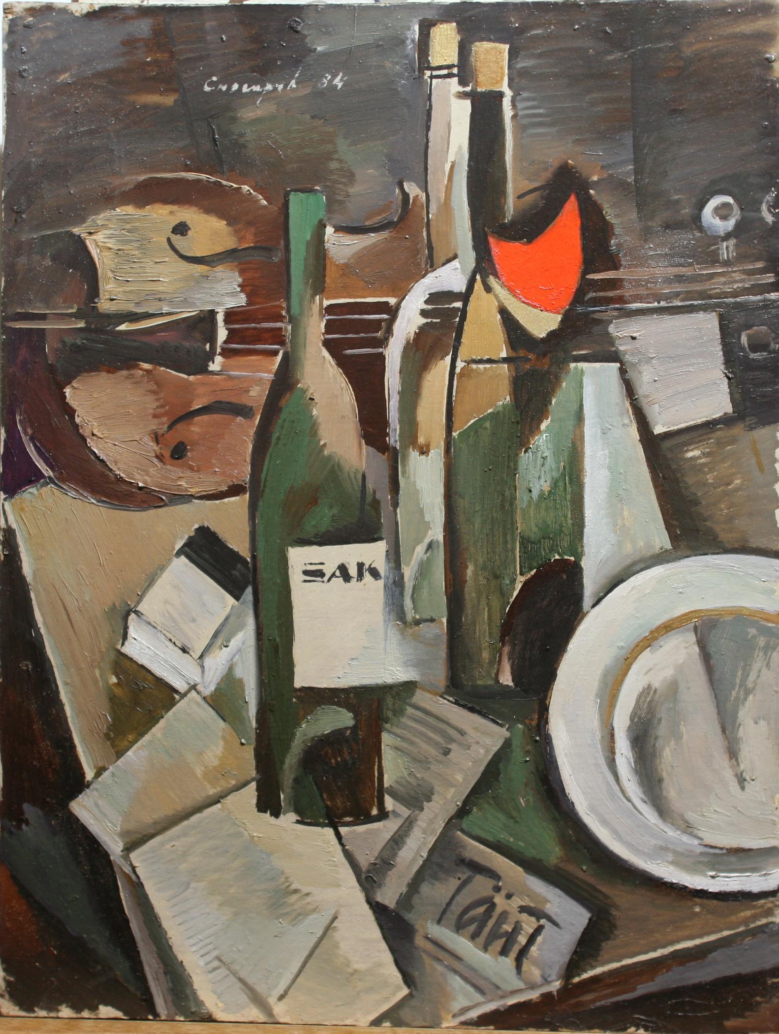Я случайно узнал, примерно три года назад, что у нас жил и работал этот художник. Я приехал к его жене, рассмотрел его наследие и купил семь или восемь работ. В том числе три работы с вклееными фотографиями. Я найду телефон его жены и разузнаю поточнее. Сообщу позже. Эта картина 1984 года. |