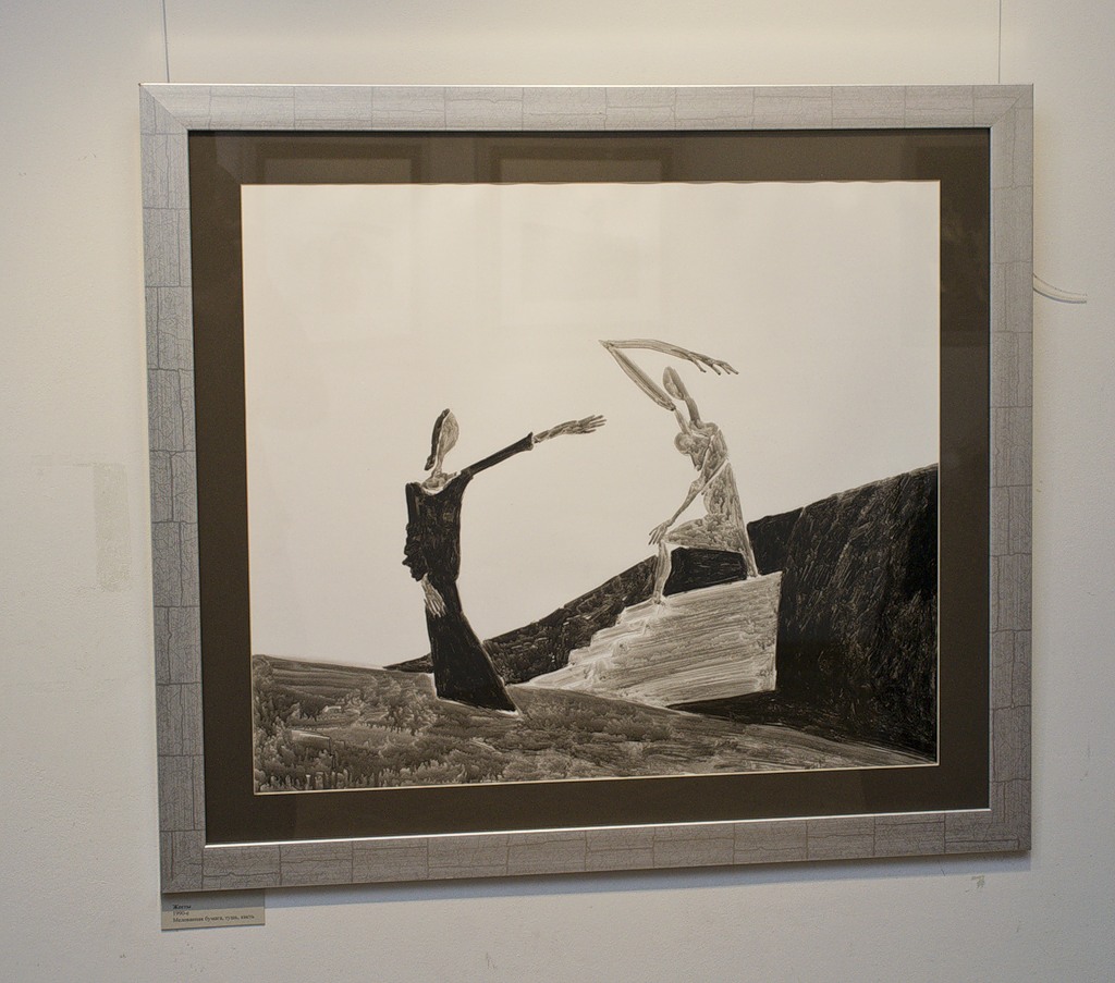 Во втором зале музея представлена серия графических листов (мелованная бумага / тушь) середины 1970-х, листы конца 1990-х и серия коллажей «Памяти скульптора Аллы Пологовой».