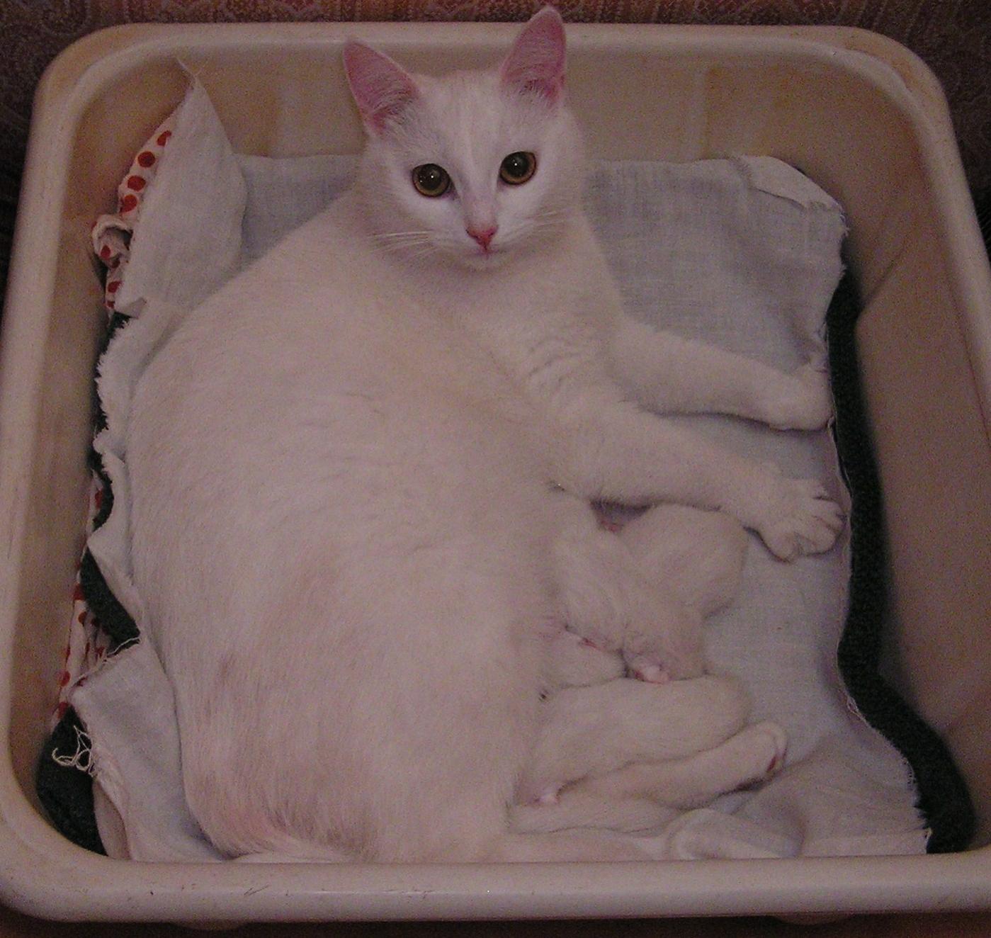У моей,вот у этой вот,кошки Белки,вчера родились 3 белых,таких же как она сама,котенка.Вдруг кому-нибудь надо ?