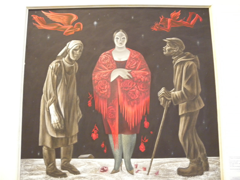 Она была похоронена 26 февраля на Козицынском кладбище рядом со своим супругом Николаем Баскаковым, который умер годом раньше. "Выставка Джанны Тутунджан открылась в Москве 1 февраля 2011 18:00 27 января в Москве в Центральном музее Великой Отечественной войны 1941-1945 годов на Поклонной горе открылась юбилейная выставка произведений живописи и графики народного художника России, члена-корреспондента Российской академии художеств Джанны Тутунджан. Присутствовать лично на торжественной церемонии Джанна Таджатовна, к сожалению, не смогла (как пояснили в региональном отделении Союза художников России, из-за неважного самочувствия), зато сумела записать и переслать свое видеообращение, адресованное гостям. Как подчеркнул на открытии первый заместитель Губернатора Иван Поздняков, Джанна Тутунджан - это гордость вологодской земли и всего русского изобразительного искусства. - Не случайно она уехала из Москвы в провинцию, - сказал Иван Анатольевич. - Все основные помыслы, темы творчества она искала не в городской среде. Она уехала в Тарногский район, в деревню Сергиевскую на берегу реки Сухоны. Именно там ее дом, ее народ, ее вторая родина, место, где Джанна Таджатовна увидела красоту русских людей, русской природы и красоту взаимоотношений наших северных жителей. В московской экспозиции представлено 165 произведений из собрания Вологодской областной картинной галереи и мастерской художницы. Как сообщили в департаменте культуры и охраны объектов культурного наследия области, это живописные полотна и графические листы, посвященные Русскому Северу, жизни северной деревни, судьбе русской женщины. «Я благодарю всех москвичей, всех, кто пришел на выставку, - сказала в видеообращении Джанна Тутунджан. - И сейчас чувствую себя как Кутузов, который сдал Москву французам, но сдал ее, чтобы спасти армию. А я сдаю свою выставку вам, чтобы восстановить свои собственные силы: так складываются обстоятельства». На открытии выставки, организованной при участии департамента, также побывали секретарь Союза художников России, народный художник России Валерий Полотнов, председатель правления общественной организации «Вологодское землячество», заместитель Председателя Государственной Думы Валентин Купцов, советник Посольства Республики Армения в РФ Мария Бабаян. Удивительно трогательными были слова однокурсников художницы по Московскому художественному институту имени В.И.Сурикова, которые не виделись с ней 60 лет. Все говорили о том, что не встречали человека более душевного и доброго, чем Джанна Тутунджан, и выражали надежду на то, что эта встреча все-таки состоится". Антон ЯНКОВСКИЙ Взято здесь Мне давно хотелось поделиться с Вами фоторепортажем с этой выставки, ставшей, к огромному сожалению, её последней прижизненной. Мне не удалось побывать на открытии. Но уходила я, практически рыдая. |