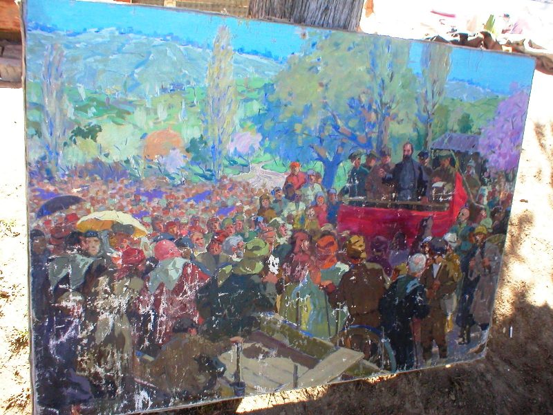 Автор - Копалиани. Размер - 120X85см. Название - "Встреча Махарадзе с рабочими и крестьянами Гурии". холст/масло. Подписан сзади (там и дата и название картины) Состояние картины - нуждается в реставрации. Цена $200+ дорога Н2 Автор - Метревели Шота. Название -"Пионеры" Размер - 63X44см. х/м., Состояние отличное. Подпись есть спереди в правом углу. Цена - 450$. Н3 Автор - Метревели Шота. Название -"Колхозницы Собирающие Урожай Чая" Размер - 73X58см. х/м., Подпись есть спереди в правом углу. Состояние отличное. Цена - 400$. |