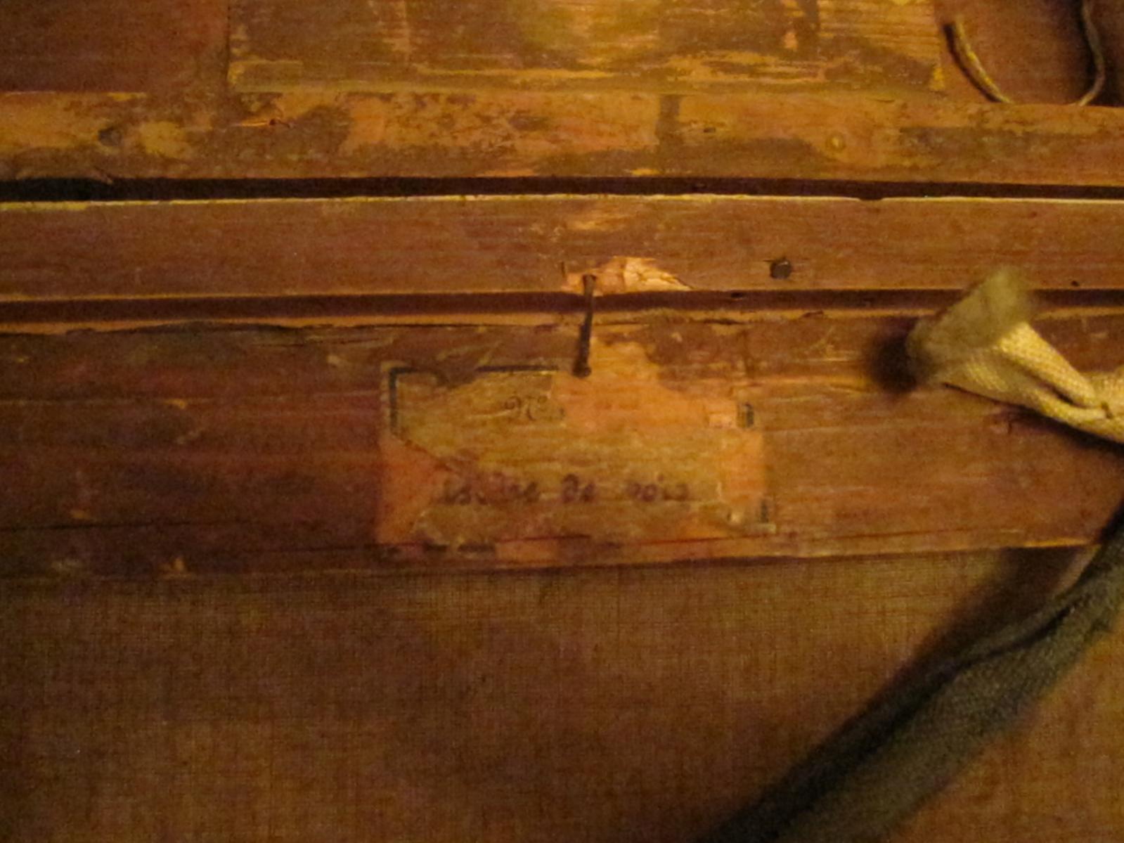 Есть символ №, дальше часть бирки отсутствует и еще часть надписи "... de bois" или "de hois", очень плохо видно. |