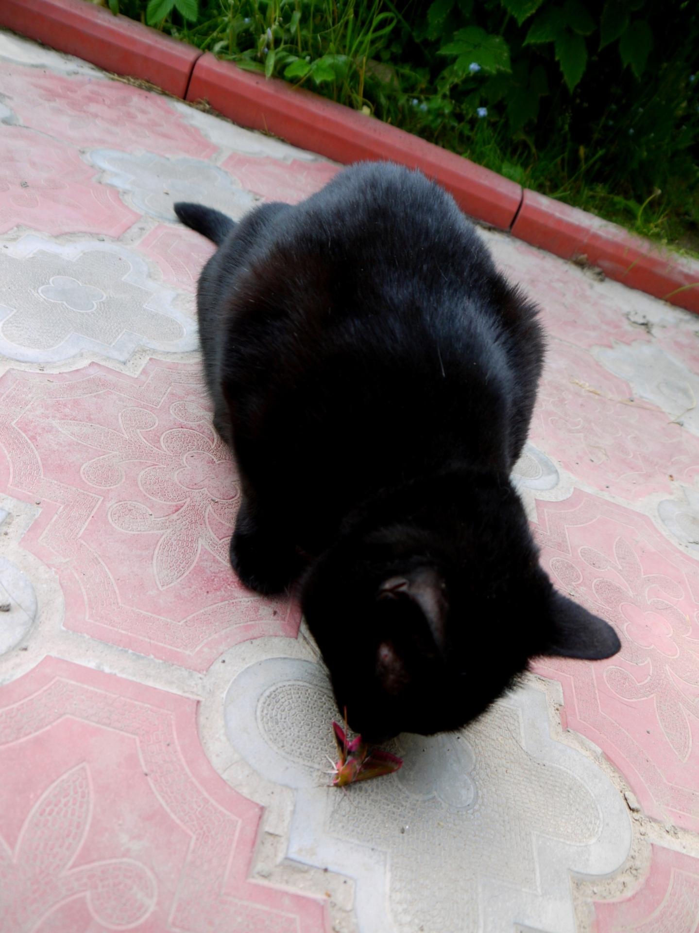 Одна наша, Мотя, и три нам «подкинула» полтора года назад наша дочь. Как объяснял всем мой муж: «дочь поменяла трех кошек на одного бойфрэнда» (теперь уже мужа). Собственно мы особо были и не против. Практически окончательно перебрались жить в загородный дом, и нам и всей нашей живности здесь хорошо и просторно. Наша собака Шарма, сразу же осознав свою ответственность за безопасность новых обитателей, поначалу принялась было их пасти и собирать в стаю. Но, получив несколько раз по морде от всех трех кошек, без исключения, она бросила это бесполезное занятие, и теперь гоняет только чужих котов. 1. Наша Мотя и Кика – самая старшая и авторитетная кошка (15 лет в этом году будет!) – по деревьям скачет, как молодая. Признает только Мотю, на остальных кошек шипит. 2, 3. Юля. (Лёлёк) – специалист по полёвкам и ящеркам. 4. Соня. (вид сверху) – любит бабочек, всяких жучков, паучков и лягушек. 5. Соня поймала что-то летающее (типа мотылька) Последний раз редактировалось Пелагея Ларина; 27.06.2011 в 09:47. |