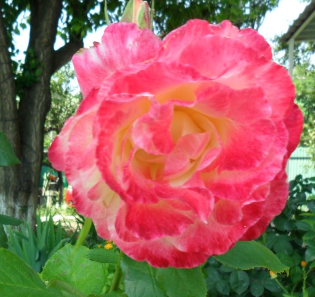 , добавляю Кемиру и по полведра-ведру компоста. Всегда все было нормально, а в этом году из-за ледяного дождя получился просто ужас: толстенная проволока прогнулась в середине и вместо дуги превратилась в литеру "М". Соответственно, розы поломались. Я думала, что все совсем плохо, ан нет: сломанное обрезала, и пошли мои красавицы цвести и расти. Но вот один куст набрал бутоны, такая листва была хорошая, а в конце июня вдруг начал сохнуть, вянуть и совсем загнулся. Мы его обрезали, пересадили на другое место, теперь ждем, что будет.