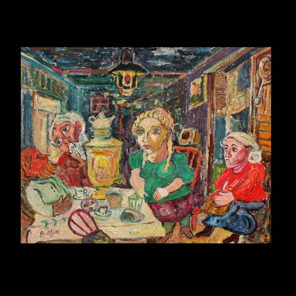 Lot 712 Attrib. David Burliuk Oil on board Attributed to DAVID DAVIDOVICH BURLIUK (Ukrainian/American, 1882-1967) "Gathering around the Table" Oil on board, 1951. 16 x 20 inches. Signed lower left. Dated lower center. In good condition. Framed. Estimate $4,000 - $6,000 Lot 721 Style of David Burliuk. "Woman w/ Flowers" oil Style of DAVID DAVIDOVICH BURLIUK (Ukrainian/American, 1882-1967) "Lady with Flowers" 8 x 10 inches. Signed lower right. In good condition: Slight craquelure across face. Framed. Estimate $800 - $1,200 Фото №3 - оригинал, с которого была скомпиллирован данный поддельный портрет. Last edited by OlegTsi; 19-08-2011 at 21:34. |