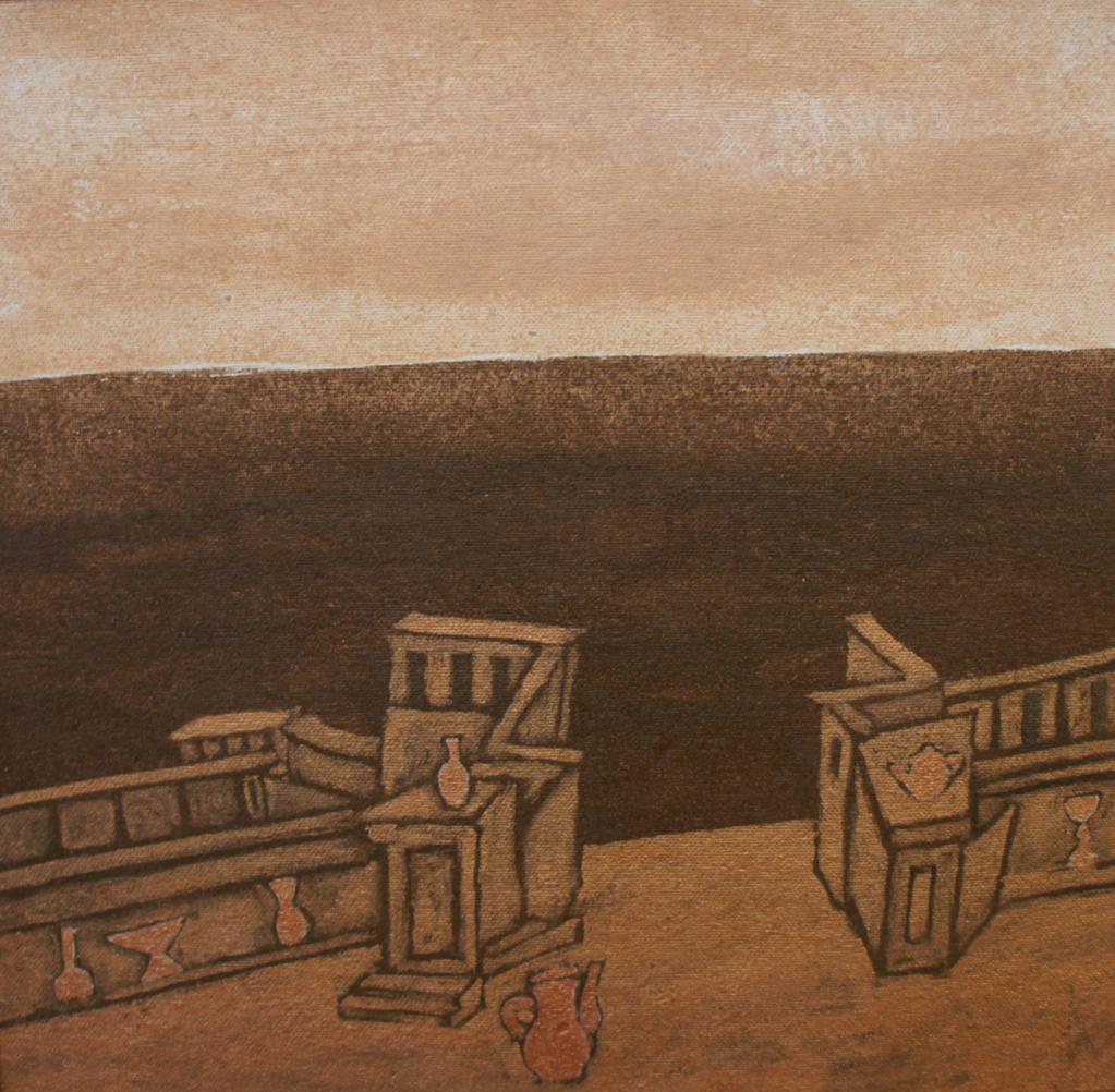 Называется – она «Дверь в лес». Есть у Бориса Кочейшвили целый цикл работ, где основные доминанты пространства: поле, лес, дорога или же дом – изображаются с помощью секущих плоскостей, несущих прежде всего ритм, ну и затем лишь намек на форму изображаемых явлений. Эта степень обобщения, но в то же время и пристального всматривания в загадочную геометрию бытия, напоминает мне опыты великого Казимира Малевича – одним из первых очистившего изображаемый мир до состояния формулы или же «идеи» вещи. Кстати, из этого магнетизма, основанного на объединении изобразительных множеств в единый плавильный котел цвета и формы в свое время вышел незабвенный Марк Ротко. Но все это вовсе не значит, что я сравниваю Кочейшвили с Малевичем или же Ротко. Я привожу свои аналогии, помагающие мне расшифровать послание художника, зашифрованное в композицях, выстроенных на ритме и пульсации форм. Работы из этой серии так и называются: «Лес», «Просека», «Дом в поле». 1. Эскиз к картине "Дверь в лес". Ватман, акрил. 2011 2. Дверь в лес. Оргалит, акрил. 2011 3. Дом в поле. Оргалит, акрил. 2007 (?) 4. Берег. Оргалит, акрил. 2007. 5. Улет. Оргалит, акрил. 2008. 6. Просека. Оргалит, акрил. 2009. |