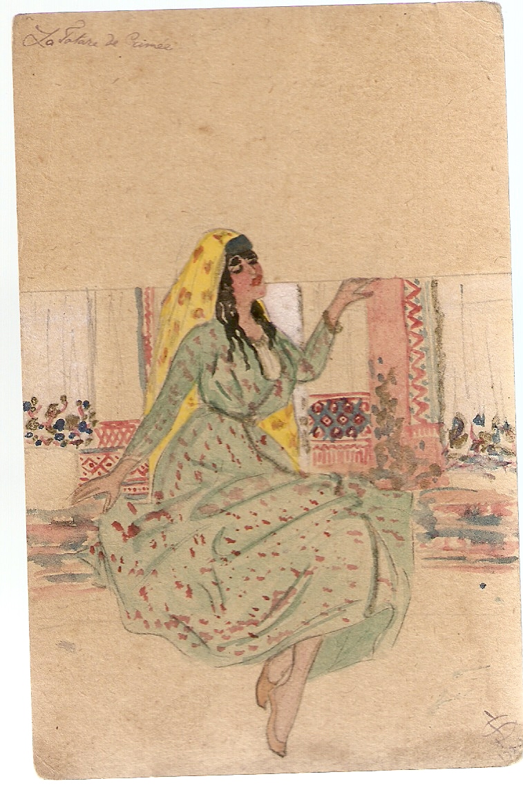 Если кому-то вышеприведённые доводы покажутся недостаточными для подтверждения авторства Соломко как создателя этих открыток, то, последний аргумент окончательно убедит их. Предлагаю сравнить надписи на открытках с надписями на безусловных работах художника ( театральные эскизы). По некоторым буквам, особенно видно, что написаны они одной и той же рукой, что на открытках, что на эскизах.