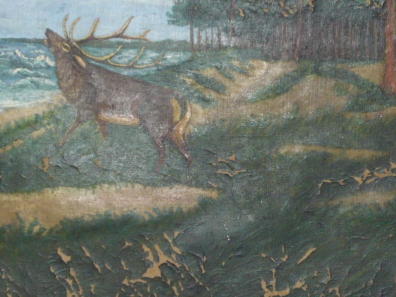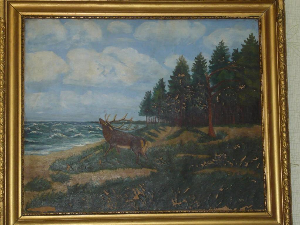 Painting inherited from grandparents, which she had brought from Germany in 1940 godu.Skolko it can cost? The picture is very old, the green paint is chipping, oil on canvas. I can not make out the author: confused: