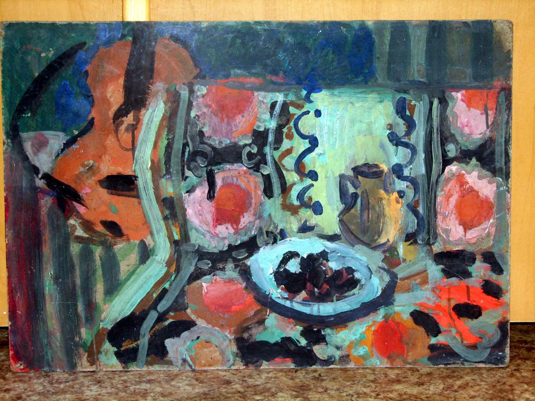 Вообще-то я покупал его как натюрморт Сергея Отрощенко,мне предложил его художник который работал в соседней мастерской,где работал в свое время С Отрощенко,он был уверен в этом,а я неочень.