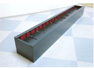 Minoru Yoshida - works with glass, neon Вложение 24875 Toshio Yoshida: uses fire to mark the surface of the picture; hammers, wooden pegs on the 60-meter surface, wrote watering