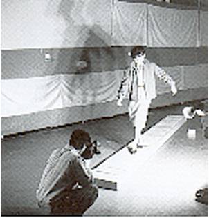 Sirad Kazuo: tied up with rope, rushes into the void and splashing paint; simulates the struggle in the mud, arrows pierces a large canvas with paint, paints his nails and feet
