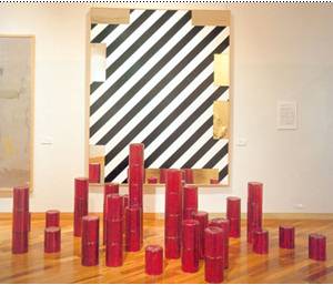Minoru Yoshida - works with glass, neon Вложение 24875 Toshio Yoshida: uses fire to mark the surface of the picture; hammers, wooden pegs on the 60-meter surface, wrote watering