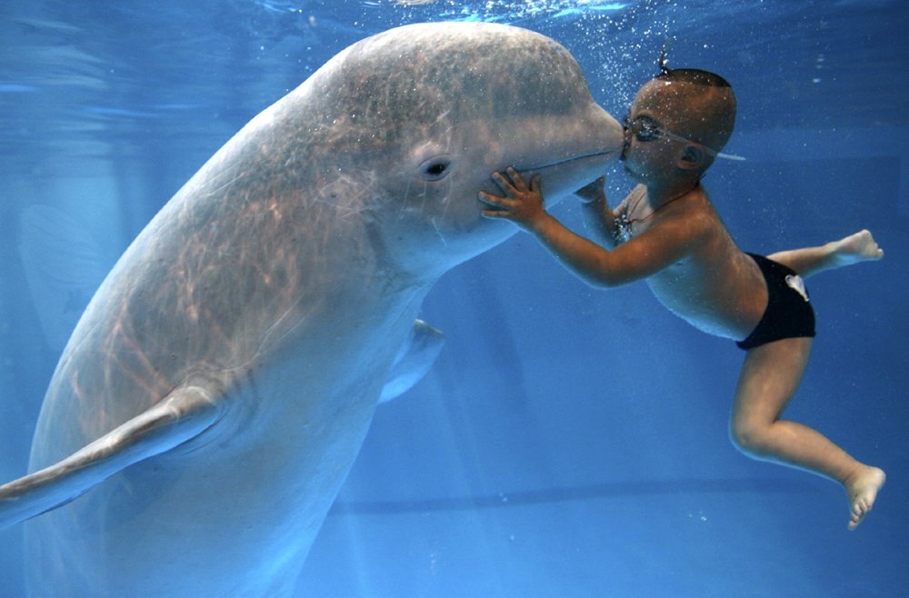 Конечно дружат.Мне жутко понравился этот сюжет.Даже видно,что дельфин умнее кота.ОН его своей дельфиньей мордочкой гладит.
